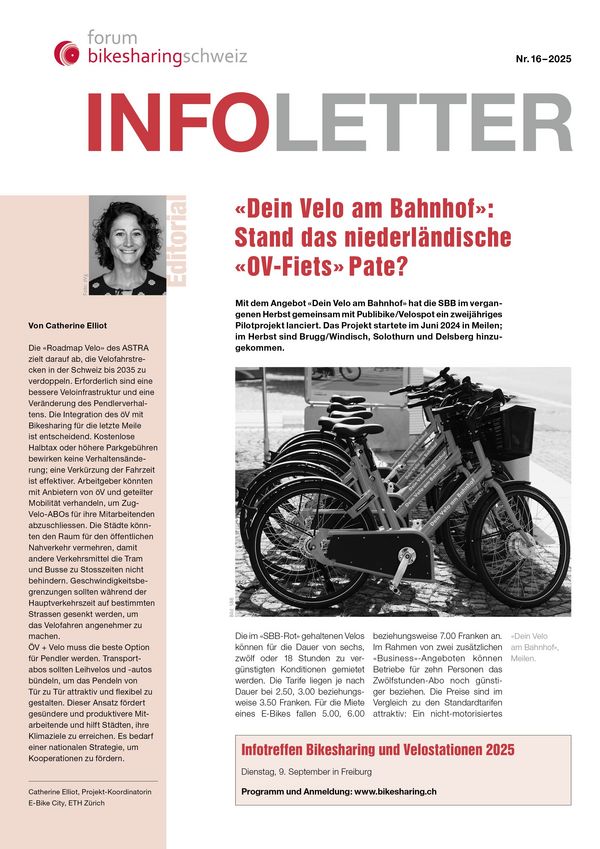 Der Infoletter des Forums Bikesharing Schweiz konzentriert sich dieses Jahr auf verschiedene Projekte zur kombinierten und geteilten Mobilität in der Schweiz. Inhalt dieser Ausgabe: